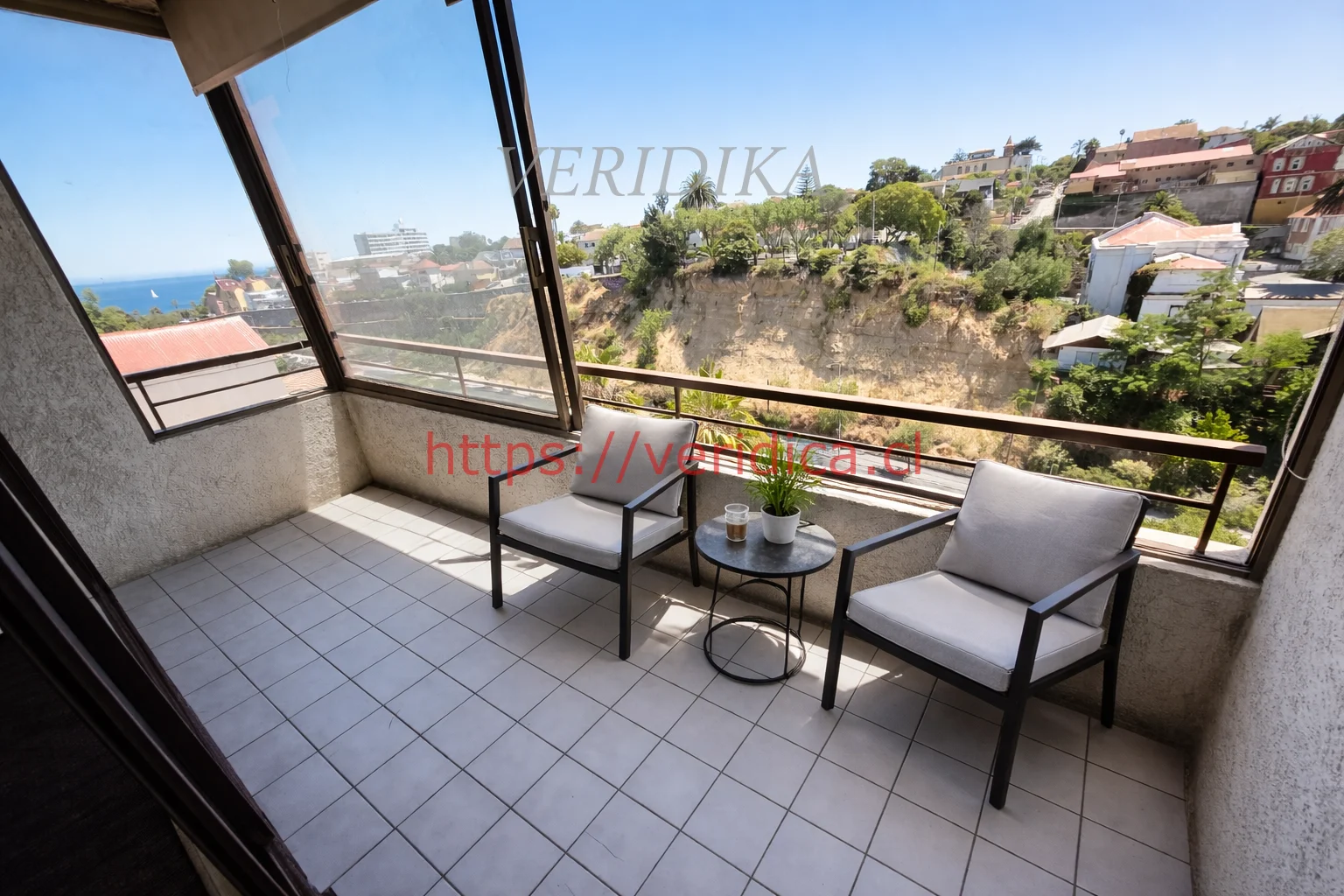 Vendo departamento en plan de Viña del mar, la propiedad cuenta con 95 m2 totales, 90m2 útiles. Con una hermosa vista al cerro Recreo ( Nor poniente) Tiene hall de acceso, 3 dormitorios, 2 baños, cocina independiente amoblada, horno eléctrico, cocina a gas natural, logia, living comedor con salida a la terraza, 1 estacionamiento techado, una bodega. Agua caliente por calefón, pisos de madera, Los gastos comunes incluyen el agua fría. Edificio con conserjería 24 horas, piscina, el edificio tiene entrada por Arlegui y por Diego Portales. Cercano a colegios, Centros de estudios, locomoción a la puerta, playa, centro de Viña.