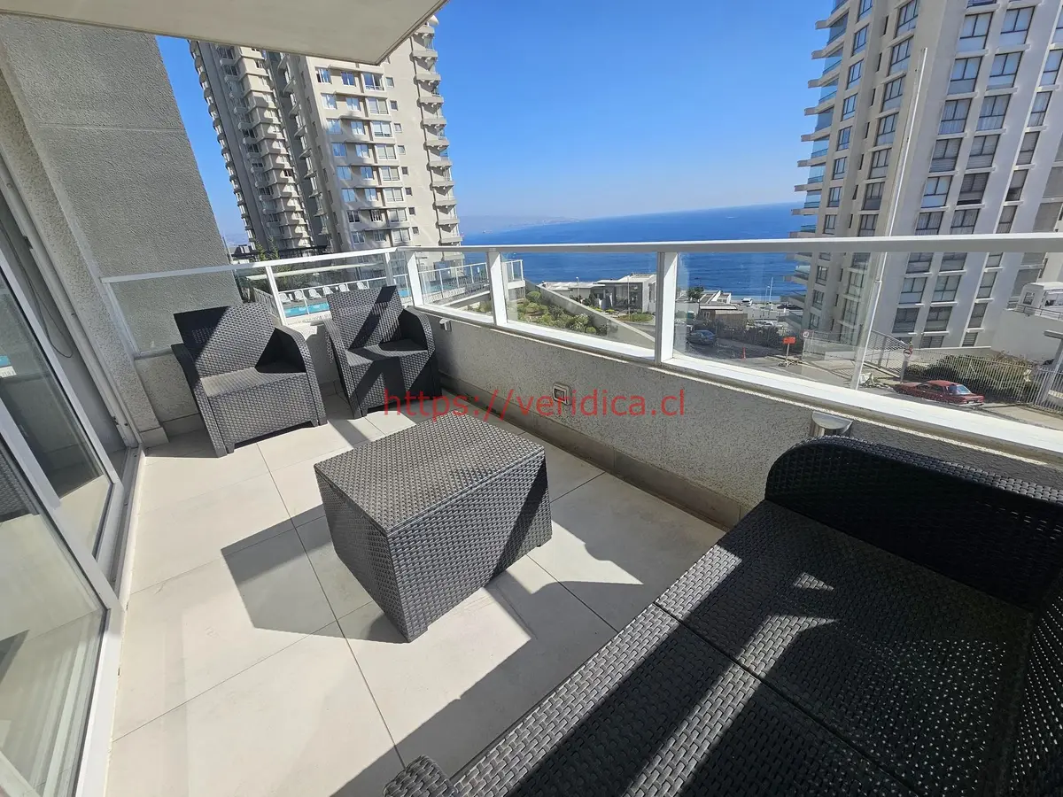Arriendo año corrido departamento con vista al mar, la propiedad cuenta con 75m2 totales, 63m2 útiles, 2 dormitorios con sus respectivos baños en suite, closet en dormitorios y pasillo, cocina americana, estacionamiento subterráneo, bodega. Sin conexión a lavadora. PUEDE SER CON O SIN MUEBLES, O TAL VEZ SÓLO ALGUNOS DE SU ELECCIÓN.