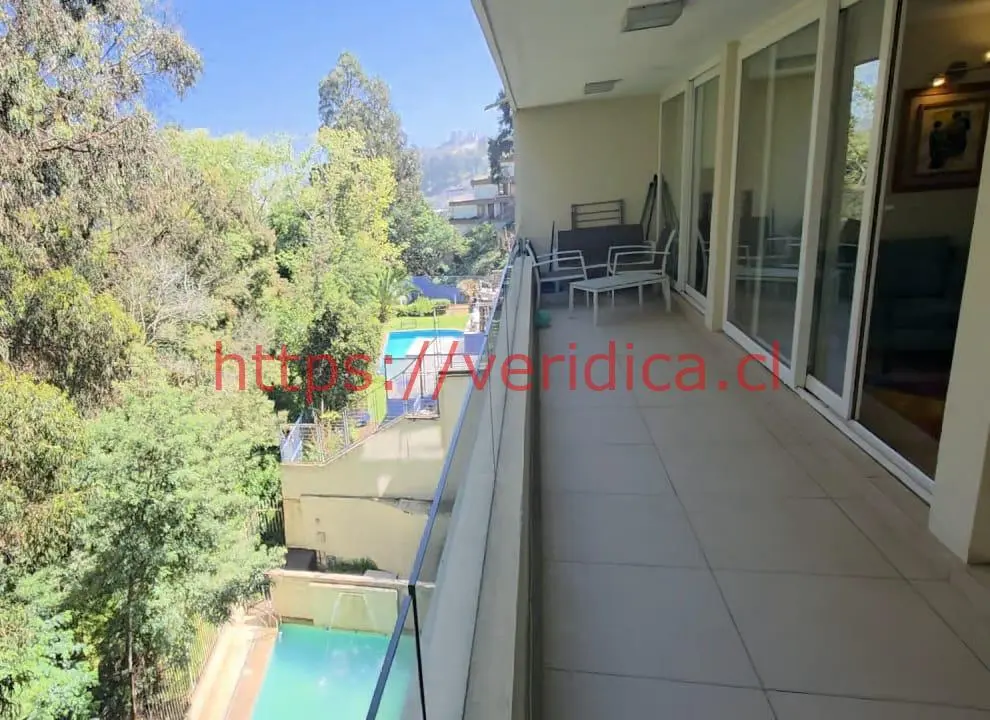 El departamento dispone de dos dormitorios, ambos con baño en suite, closet y walk-in closet, además de dos baños con tina. La cocina americana se presenta completamente amoblada y equipada, con conexión para lavadora. Destaca la terraza amplia, las terminaciones de pisos flotantes y ventanales termo panel.
