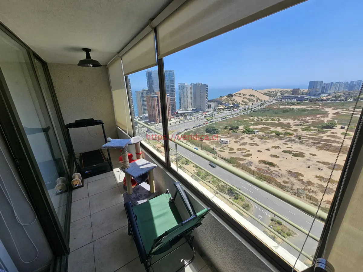 Vendo departamento con orientación norte, soleado a media cuadra de Edmundo Eluchans, tiene una hermosa vista a las Dunas y al mar, está en piso alto. La propiedad cuenta 90 m2 totales, 80 m2 útiles, los cuales se encuentran distribuidos en 3 dormitorios , 2 baños, cocina independiente con logia incorporada, ventana, living comedor y terraza cerrada. Además, tiene un estacionamiento subterráneo y una bodega.