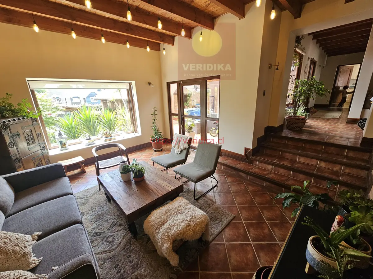La propiedad es de hormigón armado, techo de teja chilena, año de construcción 2.004, Vigas a la vista de pino Oregón en living, ventanales termo panel, pisos de cerámica. Cuenta con 5 dormitorios con sus closet, principal con walking closet, 5 baños , sala de estar, cocina independiente, logia independiente, living , comedor, terraza, patio, quincho techado con 2 baños más, estacionamiento para 2 autos, bodega.