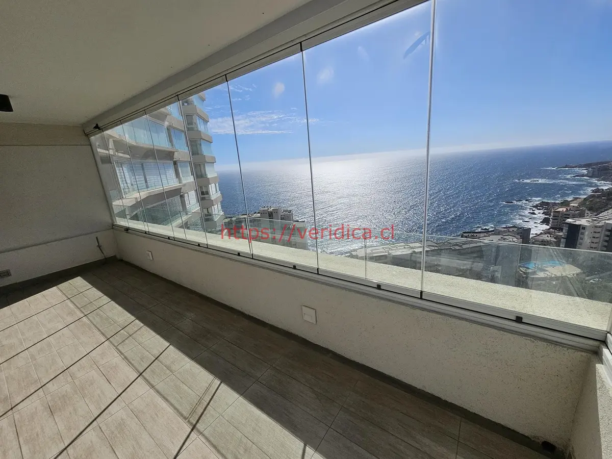 Veridika Arrienda año corrido sin muebles Departamento con vista espectacular. Se entrega con cortinas, lámparas y cierre de terraza. Cuenta con 90 m2 más 20 m2 de terraza. Tiene 3 dormitorios amplios, en el principal cabe cama King y en los otros 2 dormitorios caben cama de 2 plazas, 2 baños , uno de ellos en suite , ambos baños con ventanas. Cocina independiente con sol de mañana y ventanal, conexión para lavadora o lava vajilla, 2 estacionamientos techados y 1 bodega.