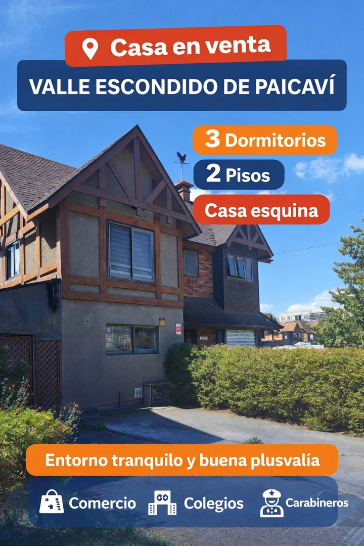 Si estás buscando una casa sólida, bien ubicada y con excelente proyección de plusvalía en Concepción, esta es una oportunidad real.115,83 m2 construidos183,89 mr de terreno 3 dormitorios2 baños + 1 en suite2 pisosgarageCasa esquina (más independencia y luminosidad)Ubicada en un barrio residencial consolidado, tranquilo y familiar, con cercanía a locales comerciales, colegios y Carabineros, lo que entrega seguridad y comodidad para el día a día.Sector con excelente conectividad hacia Paicaví y principales avenidas, lo que asegura alta demanda y buena valorización en el tiempo.Este tipo de propiedad no aparece todos los días en el sector.